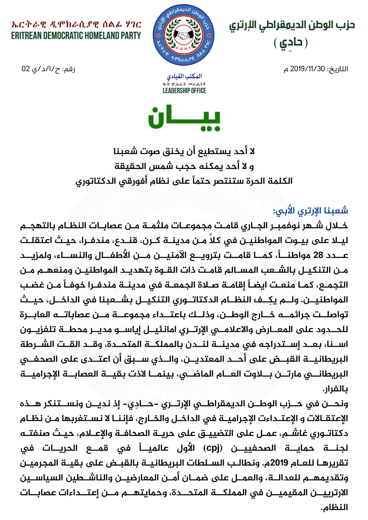 الرئيسية/البيانات/بيان حادِي حول الاحداث التي جرت داخل وخارج الوطن البيانات بيان حادِي حول الاحداث التي جرت داخل وخارج الوطن Adminيناير 19, 20200 139 أقل من دقيقة Adminيناير 19, 20200 139 أقل من دقيقة فيسبوك X لينكدإن Tumblr بينتيريست Reddit VKontakte مشاركة عبر البريد طباعة