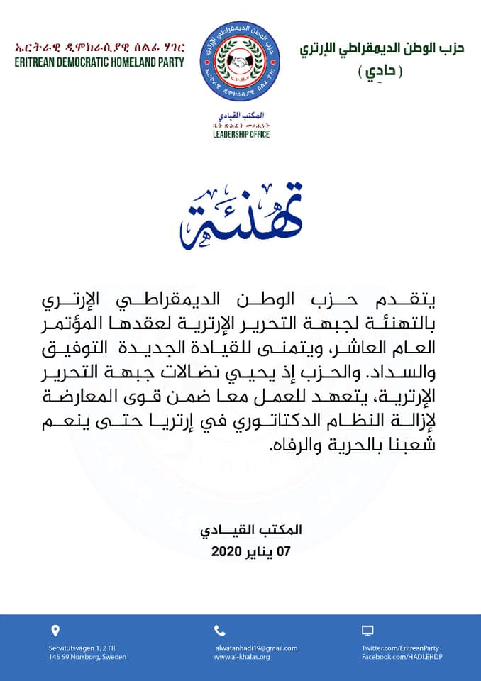 الرئيسية/الأخبار والتقارير/حادي يهنئ جبهة التحرير الارترية بمناسبة عقد مؤتمرهم العام الأخبار والتقارير حادي يهنئ جبهة التحرير الارترية بمناسبة عقد مؤتمرهم العام Adminيناير 19, 20200 92 أقل من دقيقة Adminيناير 19, 20200 92 أقل من دقيقة فيسبوك X لينكدإن Tumblr بينتيريست Reddit VKontakte مشاركة عبر البريد طباعة